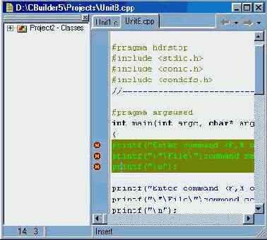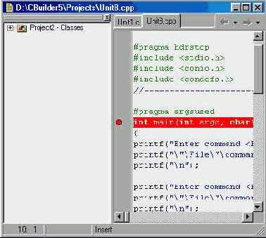 Если установить курсор редактора кода на некоторую строку исходного кода и запустить программу командой Run to Cursor главного или контекстного меню редактора (можно просто нажать F4), то курсор будет играть роль “временной контрольной точки”. Достигнув строки, где находится курсор, программа остановится, как если бы там находилась простая контрольная точка.