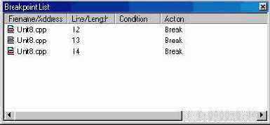 Контрольные точки в C++Builder 4 могут быть четырех видов: в исходном коде, на адресе, на данных и точки загрузки модуля.